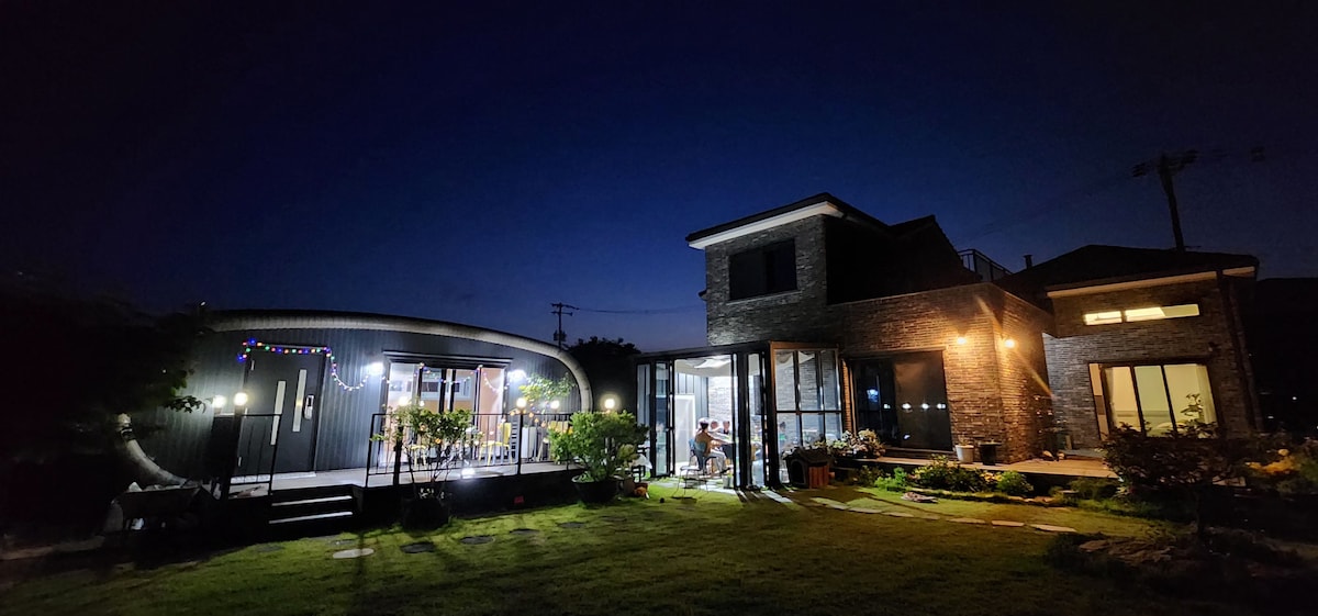 호숫가에 위치한 넓은 마당과 정원이 있는 시골별장감성을 지닌 주택입니다. 오롯이 한팀만을 위한 집입니다.뜰에는 넓은 잔디마당 (200평)과 꽃밭이 있고, 시원하게 탁 트인 하늘과 호수를 전망할 수 있어요. 호수위로 지는 노을을 바라보며 캠핑감성 가득한 불멍의 밤을 보내세요. 마당에서 모닥불과 솥뚜껑구이를 할 수 있고, 데크에서는 화로불멍과 바베큐를 할 수 있어요. 추운 밤에는 거실에서 벽난로를 지피며 밤을 보낼 수 있어요. 마당 한모퉁이에 골프네트가 있고 20m이내 숏게임을 연습할 수 있어요. 밤하늘이 맑은 날에는 마당이나 옥상에서 별헤는 밤을 보실 수 있습니다. *연박 예약시 모닥불 1회 무료로 서비스해드립니다.