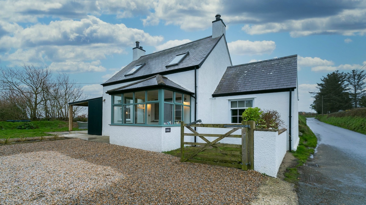 A beautiful white-washed cottage just a stone's throw from a secluded beach, overlooking Porth Dafarch beach and Trearddur Bay with the hills of Snowdonia and the LLyn Peninsula on the horizon. The sandy beach is surrounded by a stunning rocky coastline which is popular for watersports such as kayaking, paddle boarding and diving to a nearby shipwreck. It's family friendly, the perfect getaway with stunning coastal walks from our front door. 5 min drive to shops, restaurants and 2 golf courses.