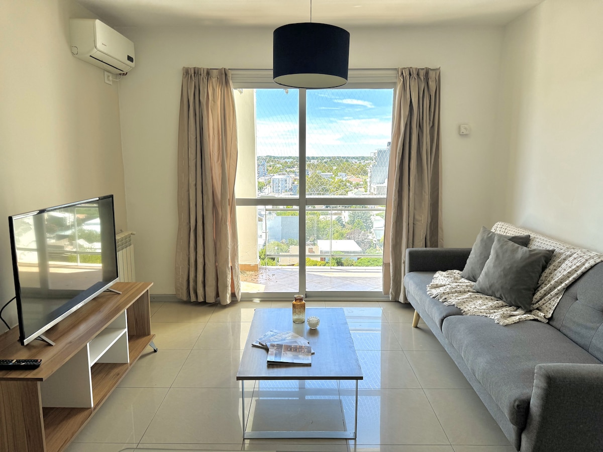 우아하고 편안한 스타일로 네우켄 중심부에 위치한 독특한 숙소를 즐겨보세요. 4인용 시설이 완비되어 있으며, 더블 침대가 있는 방, 에어컨, 완비된 주방, 세탁기, 퍼스널 플로우가 있는 스마트 TV, 초고속 인터넷, 석양을 즐길 수 있는 아름다운 발코니가 있습니다. 두 명의 어린이 또는 청소년에게 권장되는 싱글 이동식 침대가 있는 소파 베드가 있습니다. 주차는 3번째 밑토에 위치하고 있습니다.