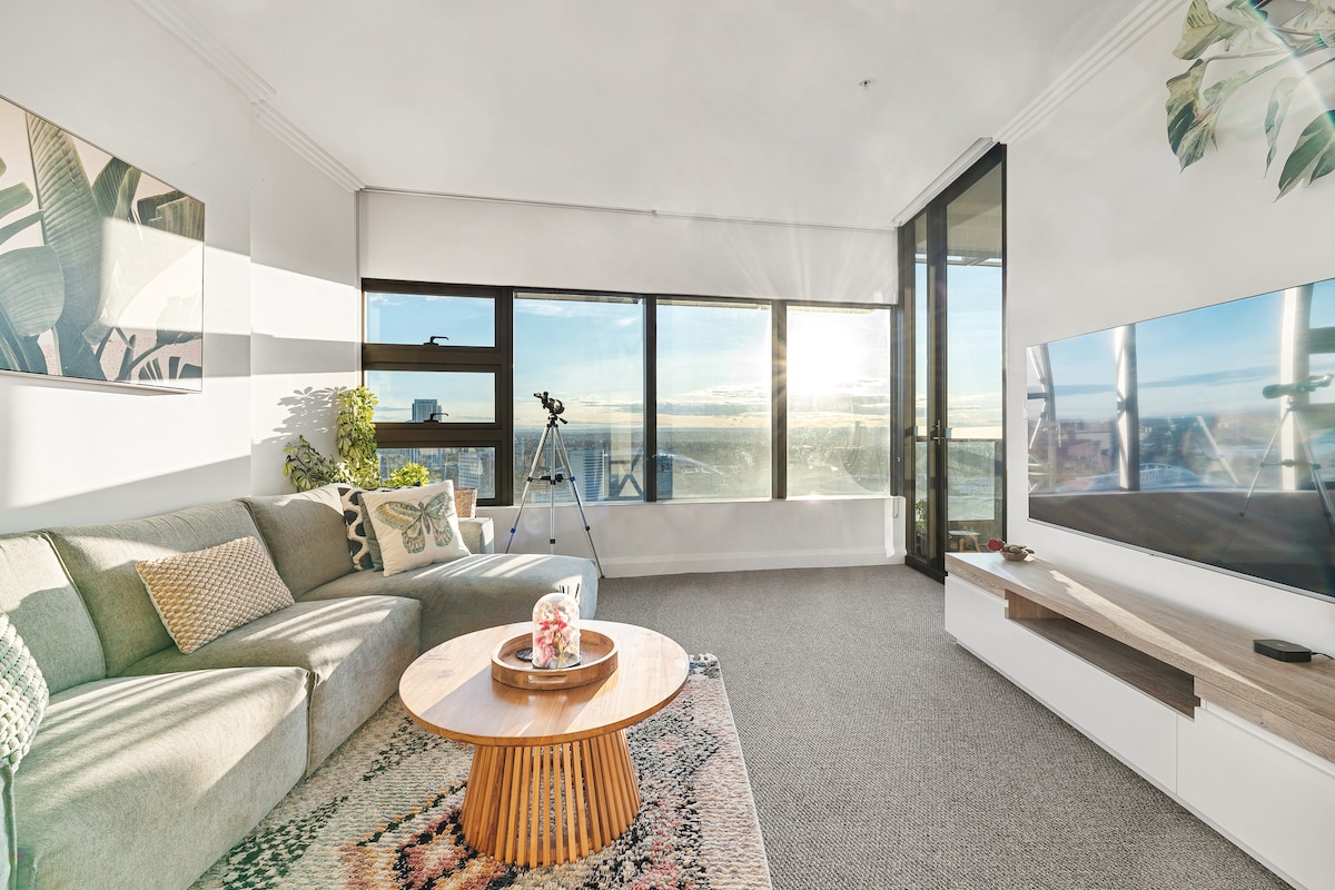 시드니 올림픽 공원의 훌륭한 지역에 위치한 새로운 고급 2베드룸 아파트! 올림픽 공원, 시드니 CBD 스카이라인 등에서 멋진 전망을 자랑합니다. 이 현대적인 공간은 개방형 거실, 대형 75인치 엔터테인먼트 시스템, 바닥에서 천장까지 이어지는 창문, 가스 조리가 가능한 세련된 주방, 퀸사이즈 침대 2개, 소파 베드, 에어컨, 무제한 초고속 와이파이, 안전한 주차 공간을 제공합니다. 레스토랑, 스포츠 경기장, 교통 시설에서 몇 걸음 거리에 있어 편안한 휴식을 취하거나 이벤트로 가득한 숙박을 즐기기에 안성맞춤입니다.
