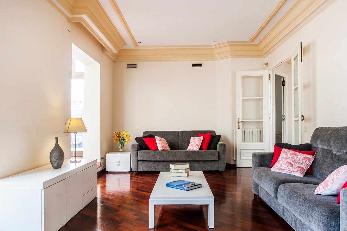 천재 안토니 가우디의 건축 유산을 따르는 독특한 모더니즘 건물에 위치한 아파트로, 진정한 바르셀로나의 집입니다. 편안함을 위해 완전히 리모델링되었습니다. 도심 한가운데에 위치한 전용 정원 테라스와 고급스러운 디테일을 즐겨보세요. 람블라 카탈루냐, 파세이그 데 그라시아, 아브디아고날에서 몇 걸음 거리에 있으며, 인근에 라 페드레라, 카사 바틀로 등 주요 랜드마크가 있습니다. 우수한 교통 연결: 지하철, 버스, 택시, 우버, 기차. 관광세 포함. 멋진 스타일로 바르셀로나를 경험하세요.