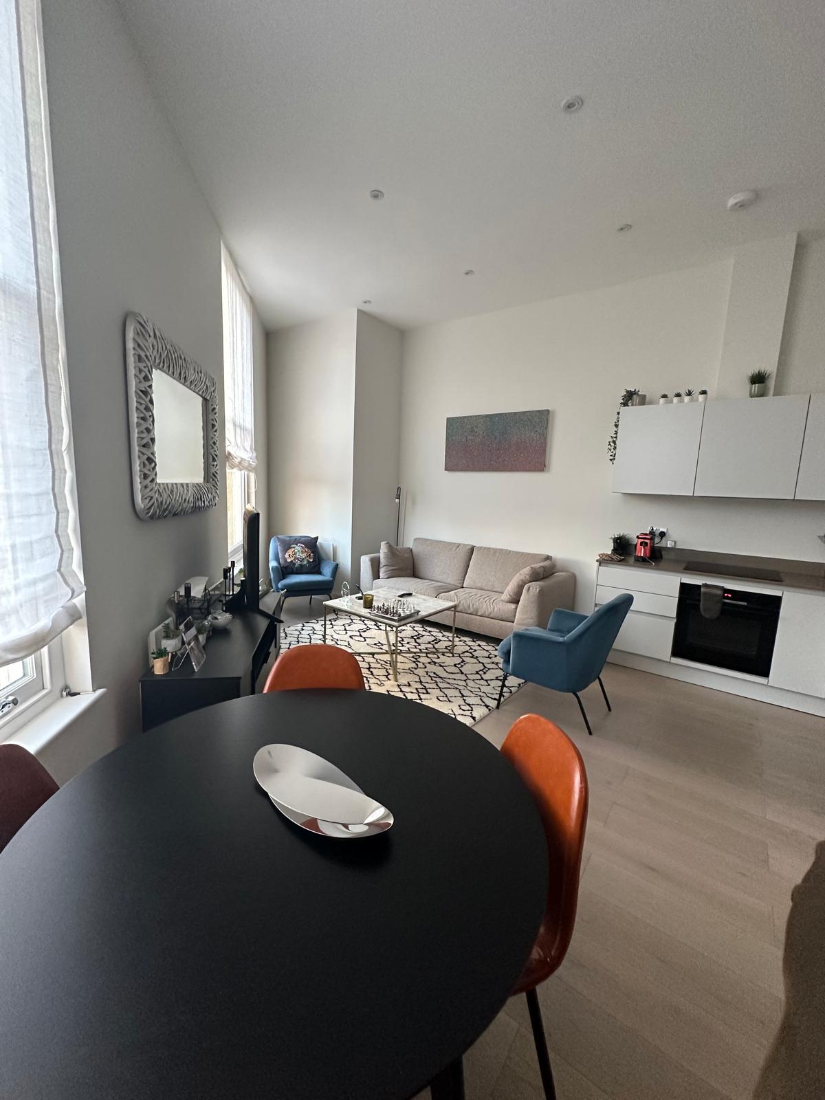 Accessed through a charming Victorian family home. This bright and intimate apartment offers a stylish retreat with a chic, monochromatic interior. Thoughtfully designed with impeccable attention to detail, the space features beautiful tiled finishes bathroom, graceful arched doorways, and characterful stripped wooden floors. Step outside to enjoy the sunny shared terrace — a perfect spot to relax and unwind in style.