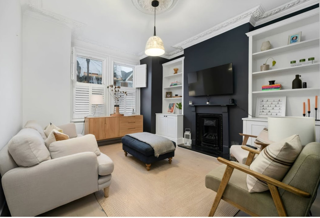 클래펌 코먼 (Clapham Common) 에서 벗어난 조용한 거리에 있는 햇살이 내리쬐는 넓은 복층 아파트. 런던에서 최고의 교통편: 런던 중심부까지 8분, 개트윅까지 25분, 윔블던까지 7분, 몇 분마다 기차.