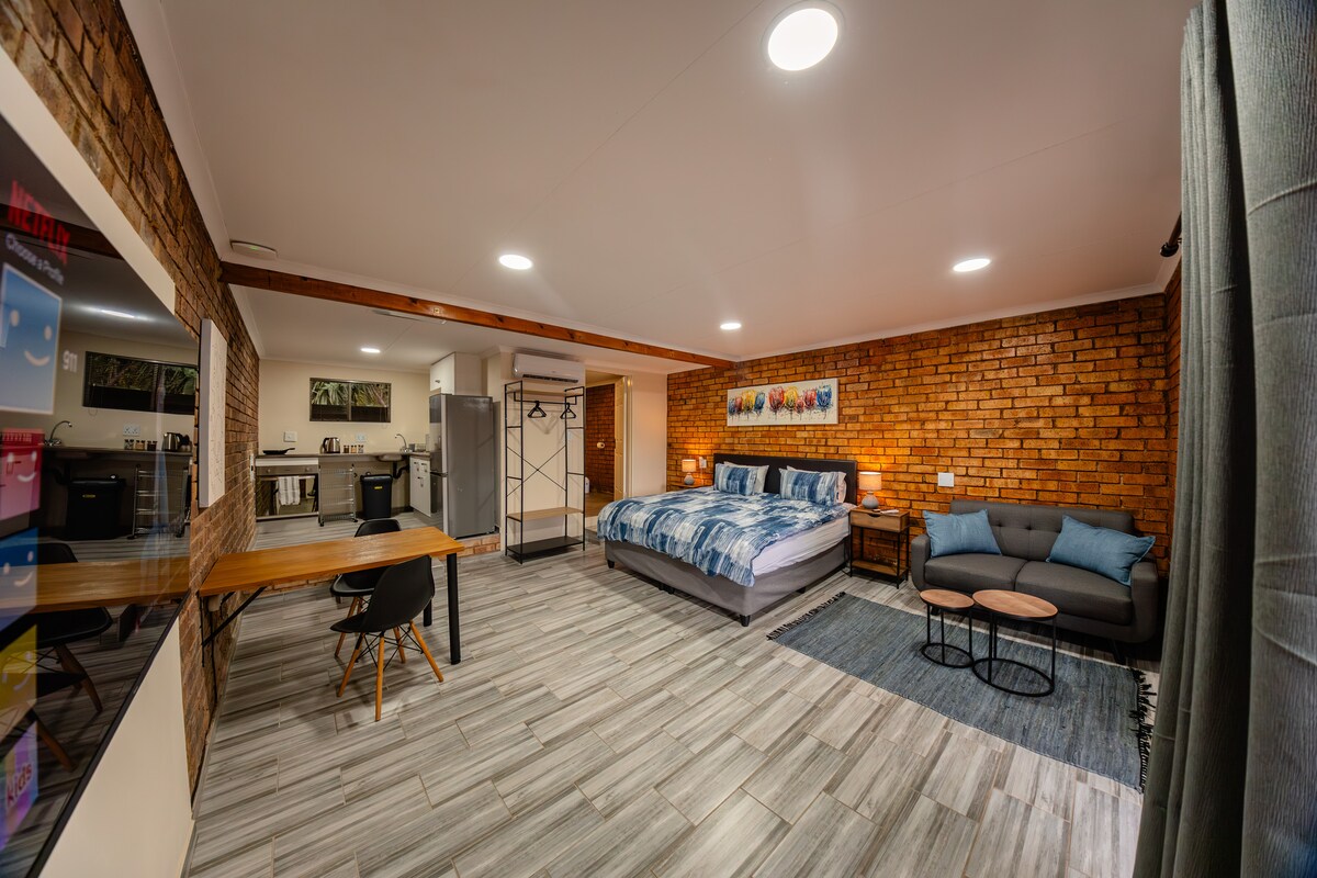 -리틀폴스/웨스트랜드에 위치. -스튜디오 스위트 전용 출입구 -인버터 백업 및 물 백업. -무료 와이파이, 넷플릭스, 디즈니+, 유튜브/뮤직이 설치된 TV 등 - 스위트룸 샤워실, 세면대, 변기. - 더블 침대 1개 및 수면 소파 1개. - 음식 준비 및 세탁을 위한 주방. - 냉장고, 전자레인지, 주전자, 토스터, 다리미, 히터(겨울철 및 추위 시즌), 선풍기, 헤어드라이어, 식기류. - 2km 반경 내에 11개 이상의 인기 패스트푸드 레스토랑 및 클리어워터 몰이 있습니다. 구내에 안전한 무료 주차.