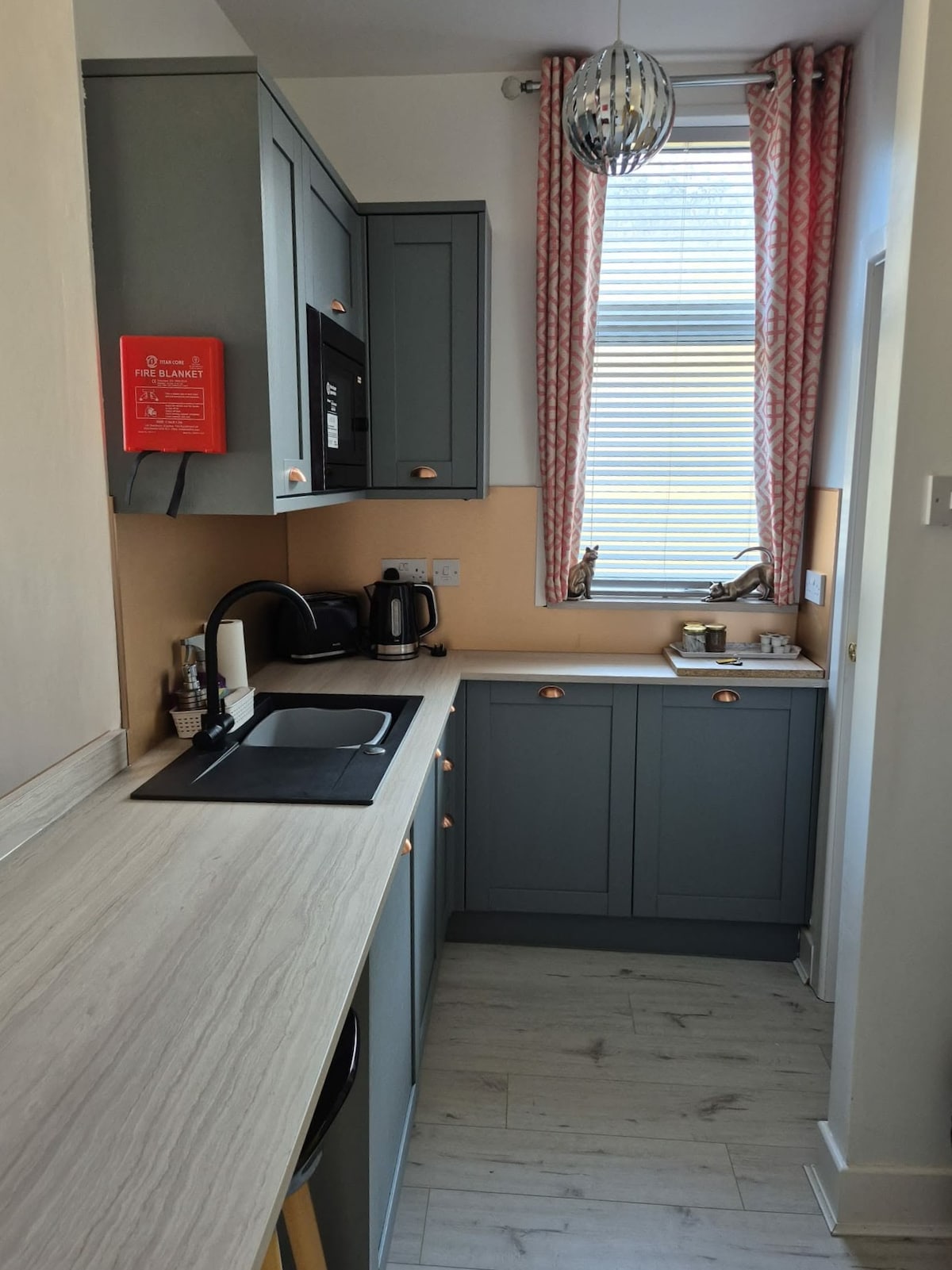 Apartment 4 is a newly renovated (Jan. 2019) one room flat let with Kitchen area, with full size cooker, fridge & microwave. The studio has a double divan bed, washbasin, own private toilet and shower. Flat screen 32" Smart TV provided. Electric is by coin meter. Location: First Floor, Side. This unit will sleep 2 people maximum.
