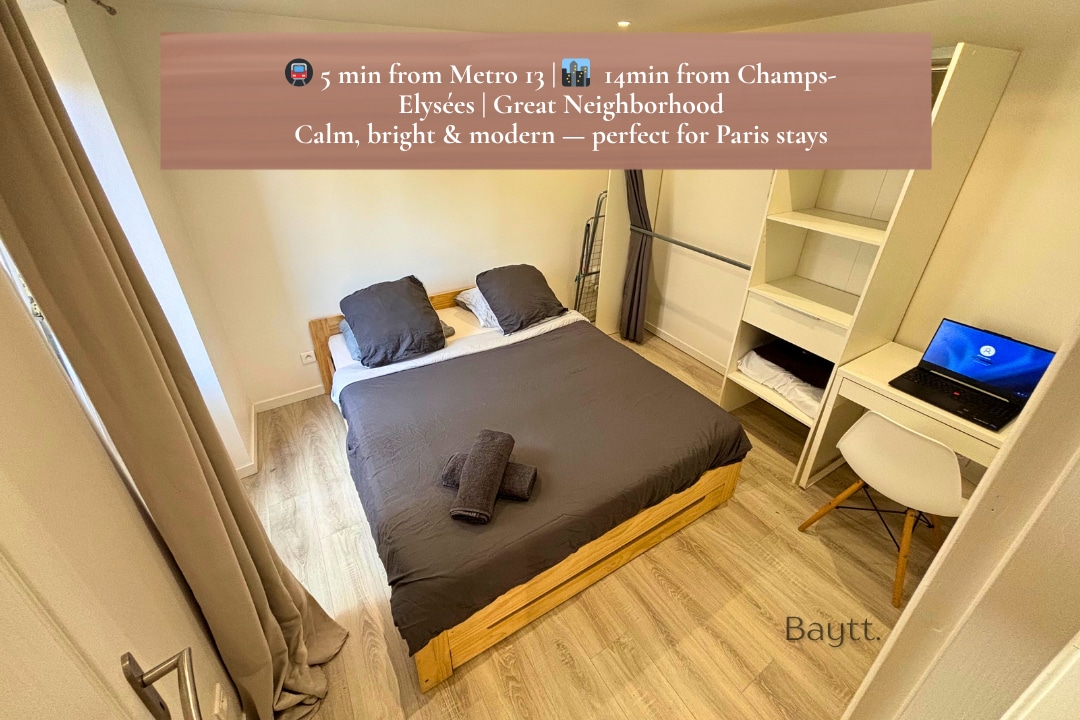 40m² 이상의 넓은 아파트에 오신 것을 환영합니다. 파리로 빠르게 이동할 수 있는 교통 수단 근처에 위치하고 있습니다. 현대적이고 조용하며 안전한 건물에 위치한 이 공간은 편안함과 스타일을 결합합니다. 단기 또는 장기 숙박에 완벽하게 갖춰진 아늑한 인테리어를 즐기세요. 도시 생활과 연결되어 있으면서도 평온함을 추구하는 여행자에게 이상적입니다. 바쁜 하루를 보낸 후 휴식을 취하기에 안성맞춤입니다!