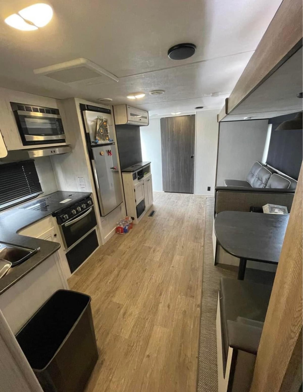 저희 캠핑카는 넓은 후면 욕조가 있는 완벽한 경량 옵션입니다. 혁신적인 EZ 베드 리프트 시스템은 거실을 늘려 소파를 접고 퀸 베드를 위해 아래로 내려갑니다. 주방에는 부스 다이네트, 단단한 표면의 조리대, 버너와 오븐, 유리 목재 수납장이 마련되어 있습니다. 다이네트 아래와 욕실에 충분한 수납 공간이 있습니다. 접이식 의자 2개, 가스 화덕, 등산용 기둥, 침구 및 수건을 포함하세요. 낭만적이고 기억에 남는 숙소에서 즐거운 시간을 보내실 수 있습니다.