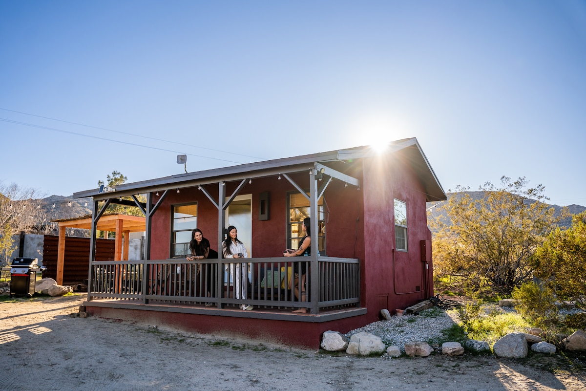 Cozy homesteader cabinโperfect for couples seeking a romantic desert retreat. 4 minutes from Joshua Tree National Park's west entrance and town. Newly upgraded with a two-person hot tub, fire pit, and covered pergola with Weber BBQ for intimate starlit dinners. Refreshed interior too. I'm awaiting more professional photos to show off the space.