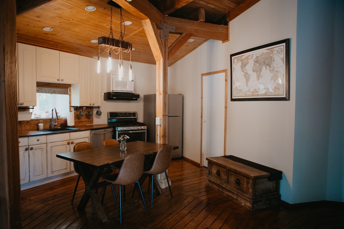 Minimalist, thoughtful design for maximum peace and comfort. Newly and purpose built to host, your clean suite is located on the beautiful Test of Humanity trail. Enjoy walking, biking or taking in the spectacular view directly from your suite or on your covered balcony. Hosts have lived in the area for decades and can guide you to the wide variety of nearby attractions, activities and indulgences the area has to offer. Located minutes from downtown but looks and feels like a nature retreat!