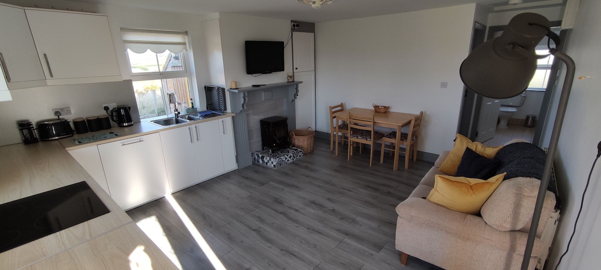 This is a bright modern self catering apartment. This property is surrounded by beautiful views of coastal countryside. It is ideally located 10 minute walk from Portmagee village, the main departure point of boat trips to The Skelligs. The spectacular Kerry Cliffs are just a 10 minute walk from this property. Portmagee is a picturesque fishing village located on the Skellig ring along the Wild Atlantic Way. A space to relax, enjoy breathtaking views and peaceful sleep.