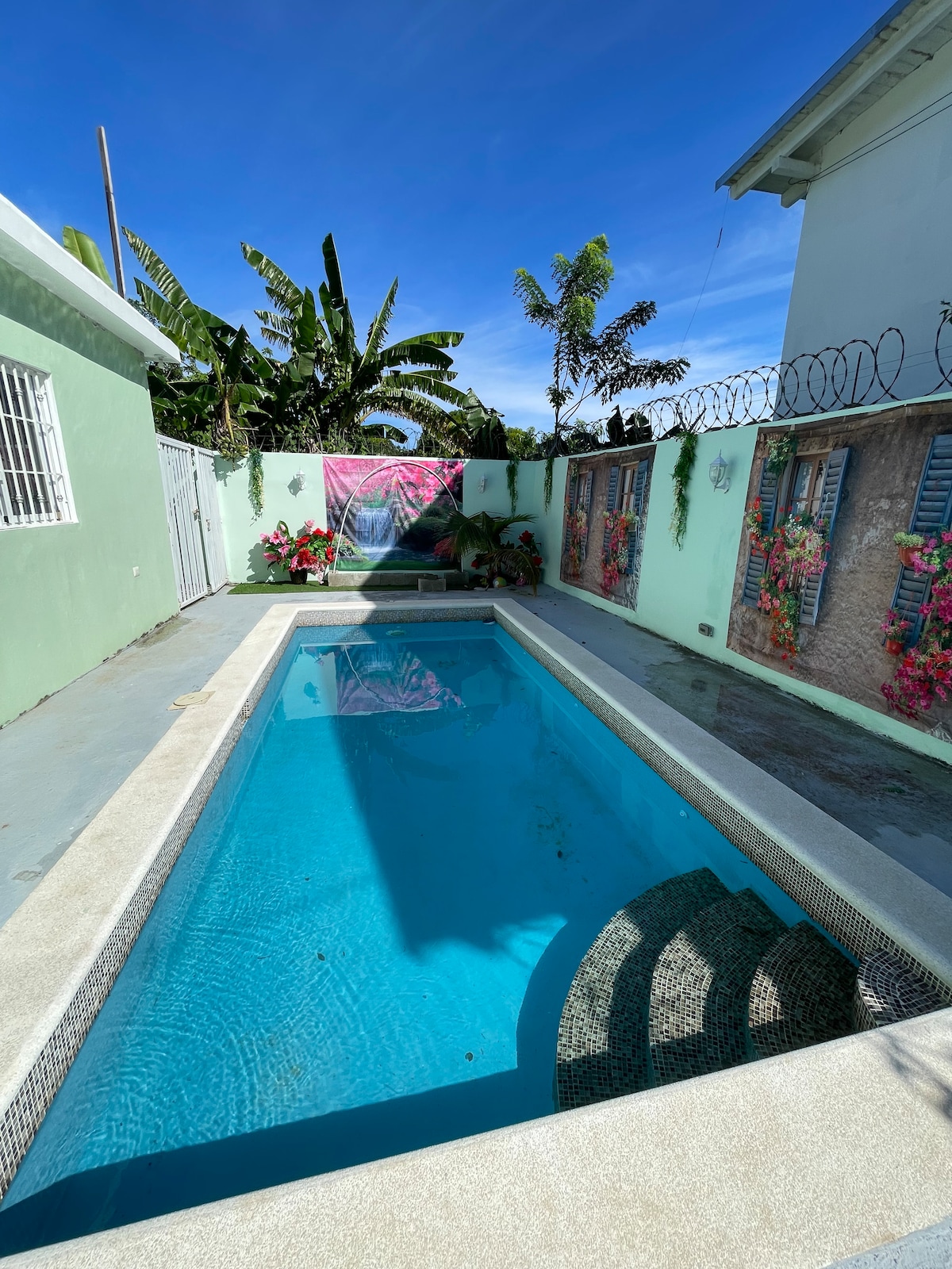 2000평방미터의 부지에 있는 전용 게스트 스위트로, 100여 종의 야생 조류를 수용할 수 있는 과일 나무가 많은 아름다운 정원으로 둘러싸여 있습니다. 소수아의 주요 해변까지 도보 7분 거리이며, 엔쿠엔트로, 카바레테 해변, 팝 공항까지 자동차로 12분 거리입니다. 주요 슈퍼마켓인 플레이어로까지 도보로 5분 거리에 있으며, 시내버스 정류장, 레스토랑, 클럽, 바, 약국이 몇 걸음 거리에 있습니다. 게스트 하우스는 완전히 새 것이며 메인 하우스 정원과 수영장은 완전히 개조되었습니다.