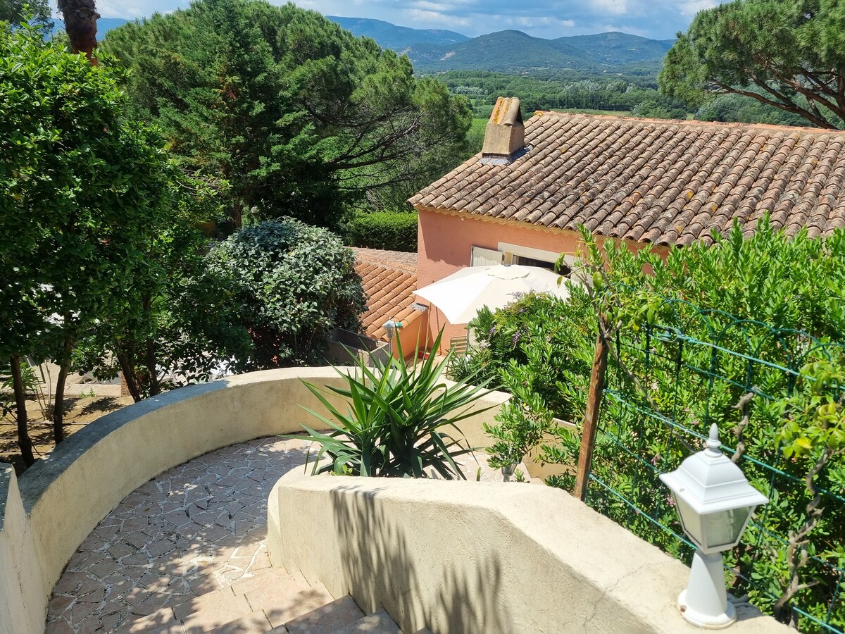 작은 집, 매우 조용함, 에어컨이 있는 바다 전망. 마을은 도보로 4분 거리에 있습니다. 숙소는 반 분리형이며 완전히 독립적이며, 시야에서 보호되어 있습니다. 수영장은 약 30m 거리에 있으며, 완전히 개인적이며, 그곳에 혼자 계십니다. 생트로페 해변은 4km 떨어져 있습니다. 2인용 객실, 160cm 침대 1개 + 소파베드. TNT 채널과 와이파이. 정원과 전용 지붕 테라스, 전용 주차장 반려동물 동반 불가, 수도, 전기, 숙박 종료 시 청소 포함