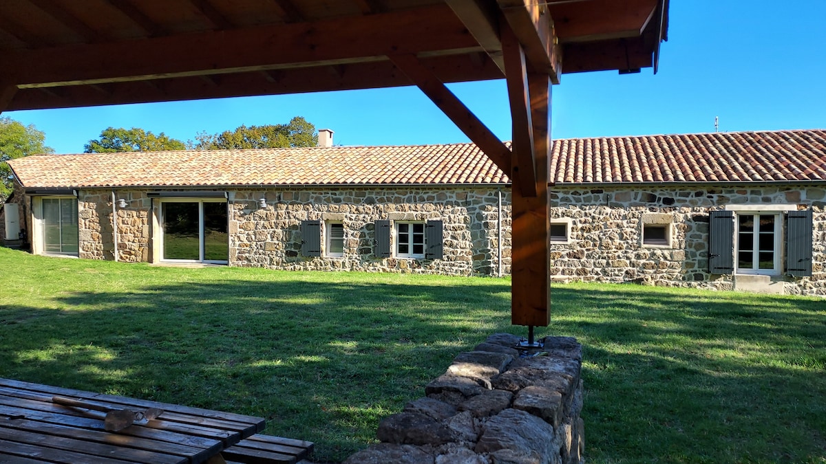 Situé dans une ancienne ferme traditionnelle ardéchoise, c'est un gîte spacieux et chaleureux classé 3 étoiles. A 10 minutes à pied d'une très belle rivière, il est le point de départ idéal pour de nombreuses balades à pied, en vélo, ou en âne (location sur place). Village à 500m (bar et épicerie). A 20 mn du Mont Gerbier de Jonc et 1h du Lac d'Issarlès. Linge de lits et de toilettes sont fournis. Les lits sont faits à votre arrivée.