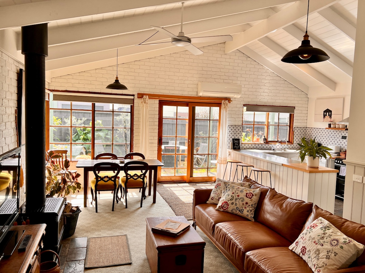 Salty Cottage; a private, beautifully appointed haven only a hop, skip and jump to the beach and cafes of Apollo Bay. On arrival you will immediately feel the relaxed holiday vibe of this delightful cottage. Modern with old world charm discover an array of thoughtful touches such as the wood fire, full kitchen & divine king bed will have you wishing you could stay forever! The spacious lounge overlooks the private fenced courtyard with sunlight streaming in & bonus glimpses of the green hills
