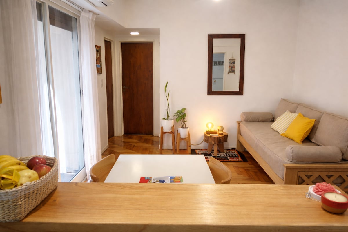 이 넓고 고요한 공간에서 걱정을 잊으세요. 1인 또는 2인용 밝고 현대적인 원룸. 팔레르모와 차카리타에서 매우 가까운 빌라 크레스포에 위치하고 있으며, 바, 레스토랑, 아울렛 지역, 슈퍼마켓, 공원이 있는 매우 조용하고 주거적인 지역입니다. 도시 전체를 위한 다양한 교통 수단(지하철 B 라인, 메트로버스, 자전거 도로). 밀롱가, 탱고 아카데미, 모비스타 아레나 근처