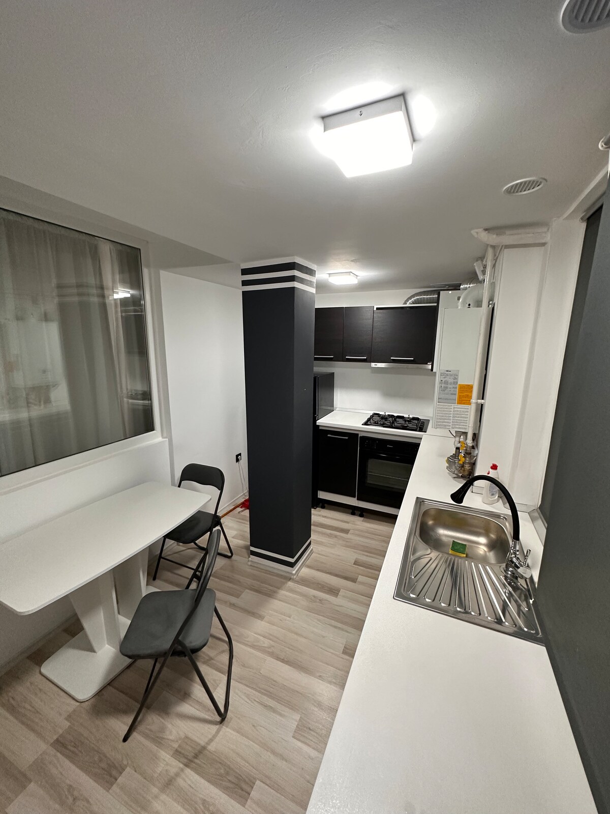 Kate Studio Un studio open space, mobilat şi utilat modern la cele mai înalte standarde de lux și mai ales curățenie. Alegând studioul nostru beneficiați de o bucătărie utilată complet, televizor smart tv cu aplicaţii de streaming disponibile, mașină de spălat, fier de călcat și tot ce aveți nevoie pentru a vă face șederea o experiență cât mai plăcută. Poziționat central în Galați, vă oferă acces rapid la zone de interes precum centru comercial, supermarket, parcare privată pazită 24/24,