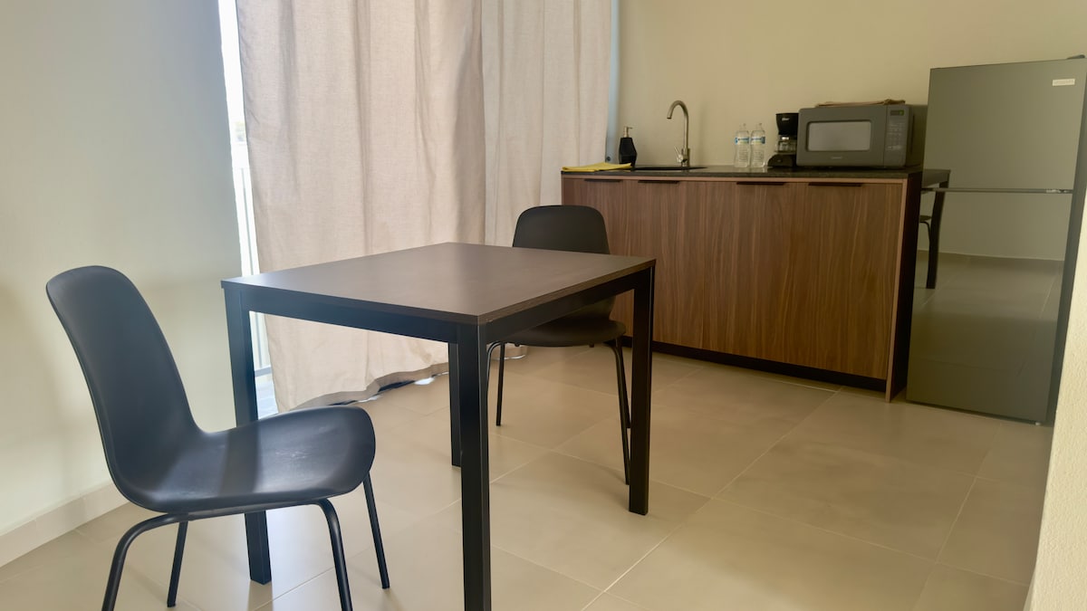 많은 녹지와 쇼핑 센터 근처에 있는 안전한 지역에서 조용하게 지내세요. 차량을 위한 반지하 차고, 하루 종일 감시 및 안전한 휴식을 취할 수 있는 모든 편의시설을 갖추고 있습니다. 거실에는 스마트 TV와 알렉사가 있습니다. 거실과 식당에 에어컨 퀸사이즈 침대와 침실 에어컨. 음식 준비를 위한 완비된 주방, 커피 메이커, 전자레인지, 냉장고. 슈퍼 위치, 세 번째 링 및 카미노 레알 대로에서 몇 블록 거리