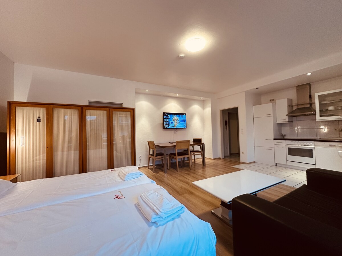 루비 레니 (Ruby Leni) 에 오신 것을 환영합니다. 뒤셀도르프 (Düsseldorf) 의 풍부한 연극 역사가 어우러진 여유로운 분위기가 느껴지는 루비 레니 매력적인 네스트 룸 (14 ~ 16m ²) 은 짧은 나홀로 숙박이나 2인용 아늑한 휴양지로 안성맞춤입니다. 고급스러운 대형 침구를 갖춘 160cm 너비의 초대형 침대는 편안한 수면을 보장합니다. 루비 케어 아로마테라피 제품으로 최고급 에어컨, 빠른 와이파이, 마샬 앰프, 상쾌한 레인 샤워를 즐겨보세요. 도시세는 요금에 포함되어 있습니다.