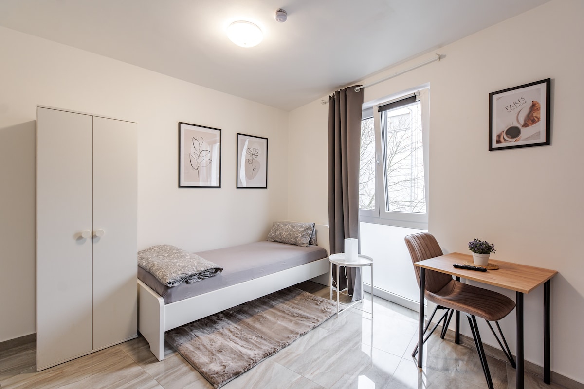 중심가에 위치하고 조용하며 빛이 많이 들어옵니다! 밖에서는 보기 싫지만, 안에서는 멋지고 아늑합니다! 😄 저희는 바로 옆에 살고 있습니다. 그랜드 피아노, 템푸르 침대(1,80), 엘리베이터, 아침 햇살이 드는 큰 발코니. 도보 거리: 도심, 라인, 초콜릿 박물관, 대성당: 15~20분. 슈퍼마켓, 레스토랑 등: 10~15분. 쾰른 메세: 지하철 3정거장, 15분. 주의: 쾰른 시청에서 부과하는 5%의 '문화세'가 가격에 추가됩니다! 비 흡연자만 가능합니다. ❤️