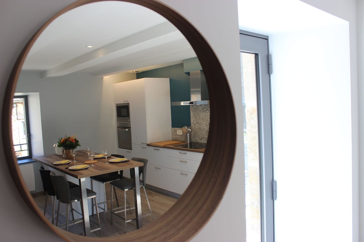 가족이나 친구와 함께 주말, 일주일 또는 일주일 동안의 마음을 맞이합니다. 바닥 난방, 주차. 유아용 침구가 제공됩니다. 2층에 진드기가 있습니다. 정원 층: 침실 3개(침대 1개 160, 침대 2개 80 또는 침대 1개 160, 침대 1개 160 가능), 욕실, 화장실. 위층에는 시설이 완비된 주방, 일반 커피 메이커 + 센세오, 식기 세척기, 세탁기, 대형 TV 라운지, 140cm 소파 베드, 20평방미터 테라스, 바비큐 시설이 있습니다. 취침 인원 8명