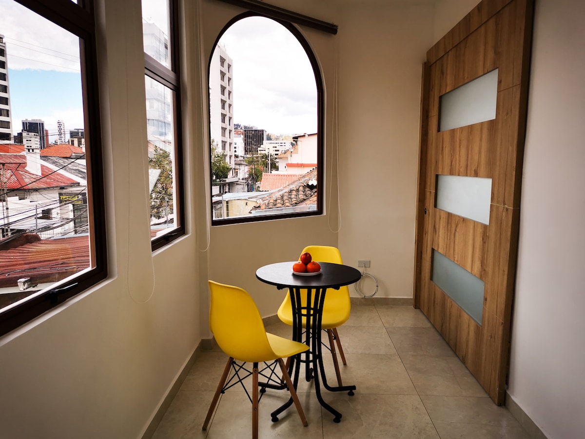 유리창이 있는 스위트로서 코너에 환상적인 발코니가 있으며, 피친차 화산과 북부 중심가의 아름다운 전망을 자랑합니다. 키토의 최고의 지역 중 하나에 위치하고 있으며, 역사적인 중심지 근처에 위치하고 있어 도시에서 임원 및 관광객 방문에 적합합니다.