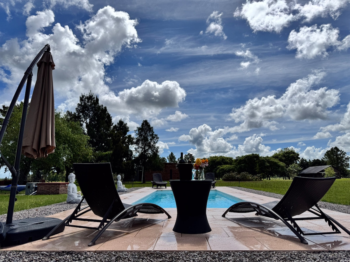 Relájate en este espacio tranquilo y elegante. Estamos ubicados en el centro de la zona de las mejores bodegas de Carmelo, con fácil acceso incluso caminando... Disfruta de un entorno privado en un pequeño barrio cerrado de la zona de Colonia Estrella. Además la CHEF ofrece su servicio personalizado en el cálido entorno de su hogar para que disfrutes de una cena inolvidable acompañado de los mejores vinos de la zona!!! Disponemos de servicios únicos y personalizados.