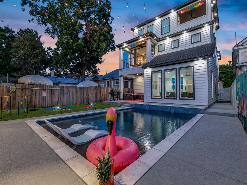 ✨Timeless-Texas-Inn✨ • 미니⛳ 골프가 있는 넓은 뒷마당! - 🔥난방 수영장 🌊 - 최고의 텍사스 재미를 위한 바비큐와 수많은 게임! • 밤에는 카페 조명,🔥 화로, 멋진 정자가 뒷마당을 밝히며, 시대를 초월한 인테리어와 매력을 발산합니다. • 새로운 영화 🎦극장🍿룸 - 🎮게임룸 - 🎱당구대 - 🎯다트 - 아케이드 및 보드 게임 - 단체 여행객이 완벽한 환경에서 오래 기억에 남을 추억을 만들 수 있는 이상적인 공간을 제공합니다! • 칼라하리까지 8분 • 도메인까지 12분 • 오스틴까지 20분 🎸🎶