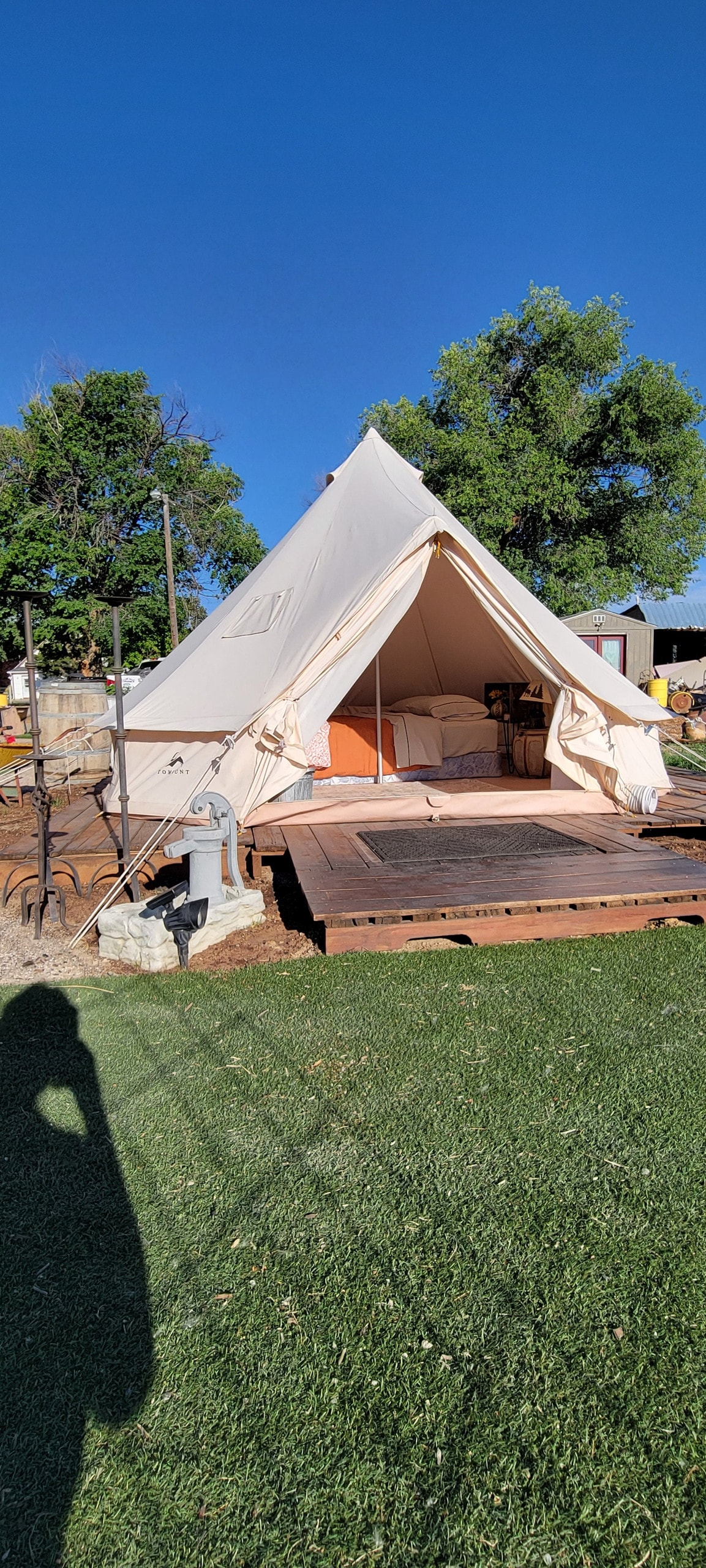 Welcome to Cloudscape Retreat! ☁️✨ Ready for the ultimate high-altitude glow-up? 🏔️ Our vibrant White Bell Tent is your VIP pass to the Rockies! 🌌 Star Power: We’re in International Dark Sky territory—sleep in a glitter-globe of stars! 🍳 The Goods: Private outdoor kitchen, BBQ, cozy hammock, and a fire pit ready for s'mores. 🐾 Pups Welcome: Bring your furry bestie (just keep 'em leashed around our resident patrol dogs!). A quick, spicy hike in Boncarbo leads to total magic. Book now! 🌄💖✨