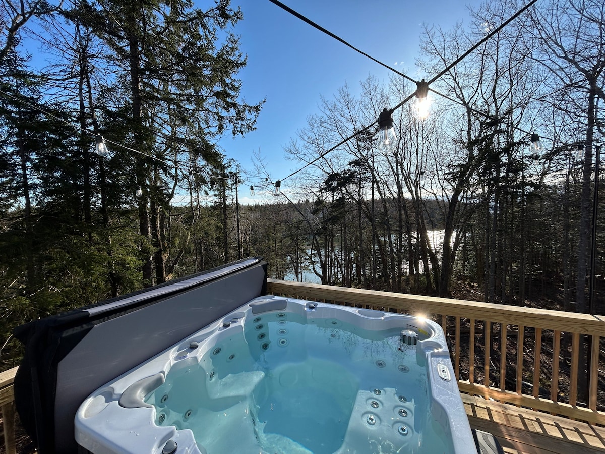 아카디아 바 하버 입구에서 40분 이내 거리에 위치한 이 작은 개인 숙소는 조용하고 평화로운 산 전망과 수많은 야생 동물을 볼 수 있습니다. 최신식 맞춤형 숙소로 4명이 편안하게 잘 수 있습니다. 유리 벽은 3개의 산을 마주하고 있습니다. 숙소는 도넬 폰드 로드에서 200피트 거리에 있으며, 다운이스터 레일츠 트레일에서 ATV를 이용할 수 있습니다. 도넬 연못은 카약, 보트 타기, 수영, 낚시를 즐길 수 있는 훌륭한 장소입니다. 숙소에서 보이는 산으로 둘러싸인 훌륭한 모래 해변.