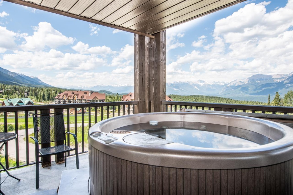 브리티시컬럼비아주 골든에 위치한 온수 욕조가 있는 현대적인 산악 샬레