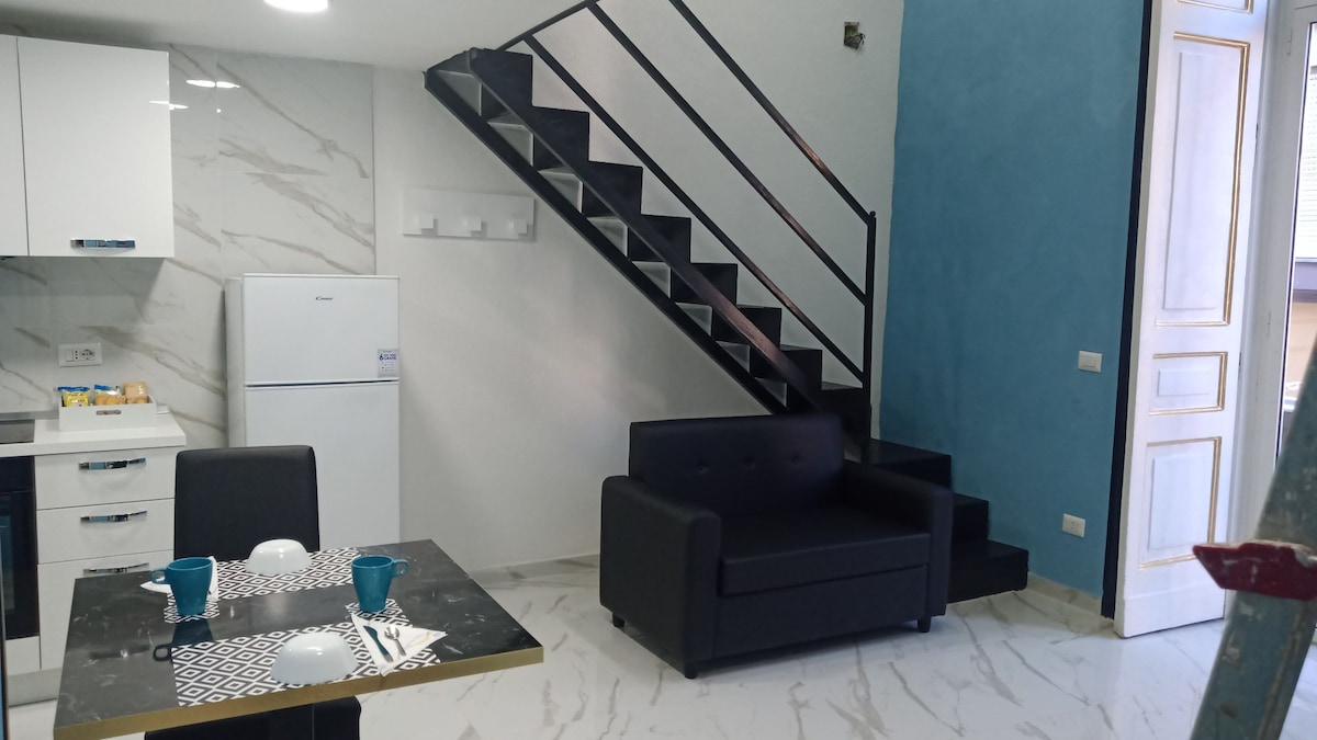Appartamento raccolto, accogliente e colorato, situato nel cuore del centro storico di Napoli. Posto al 1o piano di uno edificio storico del '600, adiacente al complesso della Cappella Sansevero. L' appartamento è stato appena ristrutturato; arredato con pezzi di antiquariato napoletano e modernariato, mixati con tanto colore. Si sviluppa su due livelli: un ampio piano-terra living con divano letto, cucina completamente accessoriata e bagno, e soppalco con ampia camera da letto matrimoniale.
