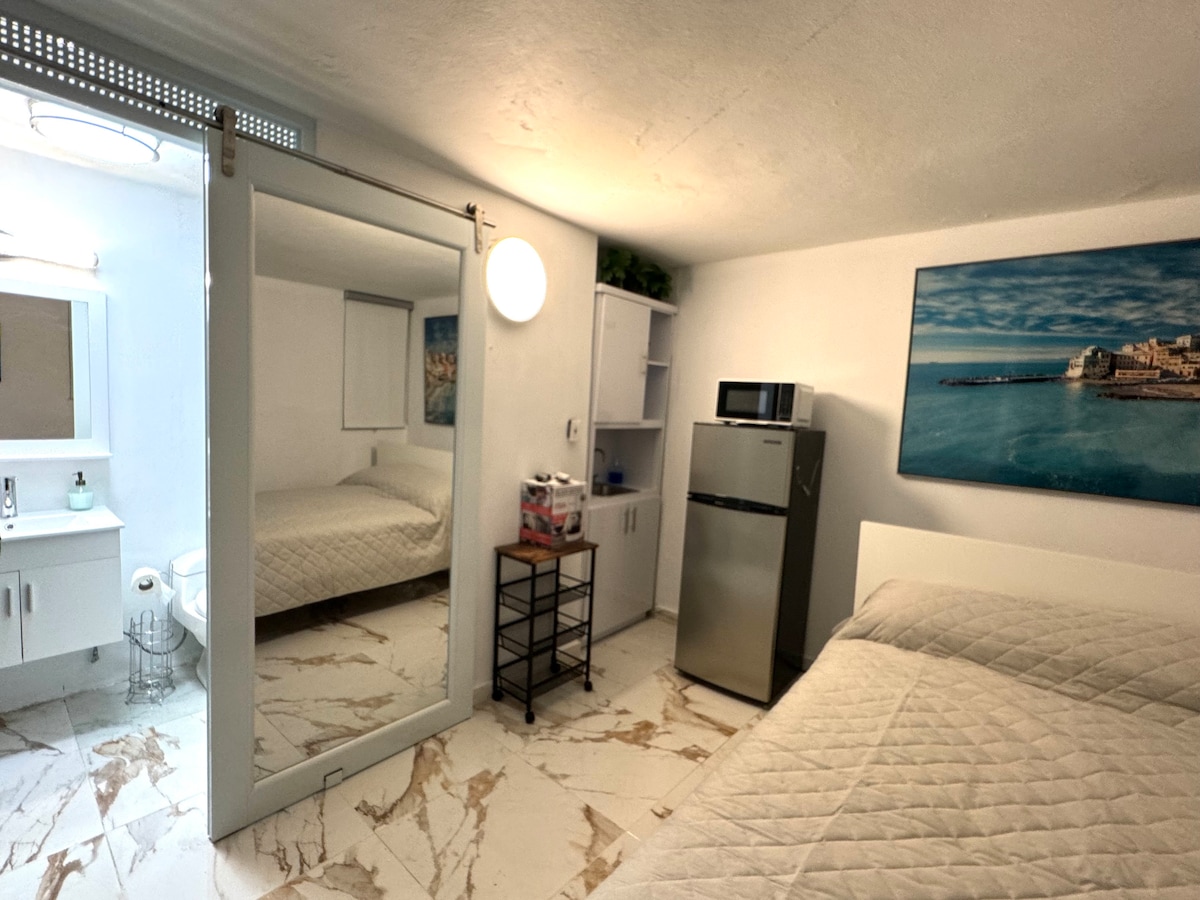 비스타 마르 2명의 게스트를 수용하는 스튜디오(성인 전용). 스튜디오에는 퀸사이즈 침대, 에어컨, 작은 전용 욕실, TV(로쿠 디지털 미디어)가 있는 작은 거실, 작은 냉장고, 커피 메이커, 전자레인지, 토스터, 필수 조리도구, 미니 발코니가 완비되어 있습니다. 매우 조용하고 안전하며 접근성이 좋고 평화로운 동네입니다.