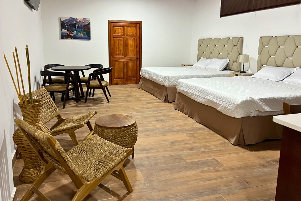 Disfruta de una estancia cómoda en habitaciones modernas con camas grandes, baños completos, aire acondicionado, Smart TV y agua caliente. Somos Milo’s Hostel & Residences, tendrás acceso a piscina, cocina compartida y áreas sociales. Perfecto para descansar cerca de Todo, restaurantes y puntos turísticos de Santa Ana.