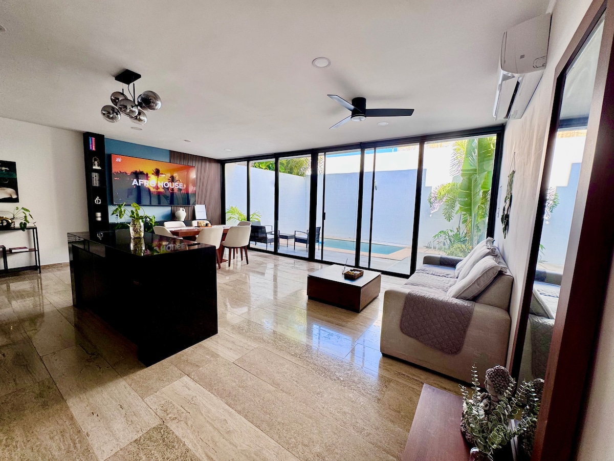Modern Home w/ Pool, BBQ & Workspace –North Mérida