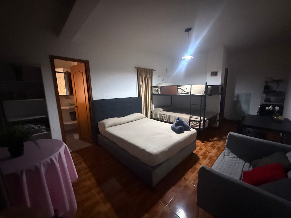 2018년부터 Un Lugar Tuyo en Cdmx는 가족 또는 친구와의 완전한 신뢰와 독점성을 의미합니다. 편안함, 청결도, 도시 소음 없음, 독립성, 평온함, 보안 및 휴식. 작은 식사 공간과 주방, 욕실과 침실에 침대 2개 + 싱글 1개로 구성되어 있습니다. 1층에 위치해있습니다. 소칼로에서 12분 거리에 메트로버스, 메트로 벨라스 아르테스를 이용할 수 있습니다. 주간 및 월간 할인으로 장기 숙박이 더욱 편안해집니다. 전 세계에 오신 것을 환영합니다!