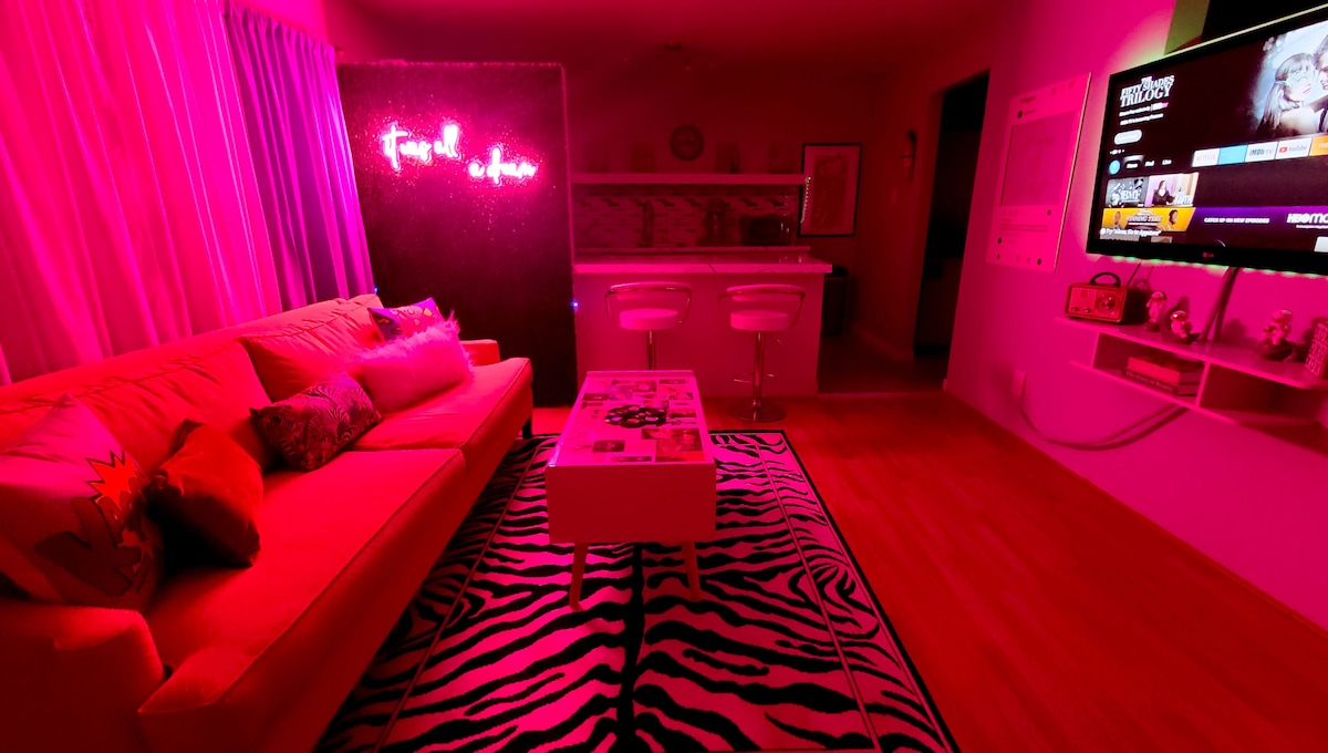 휴스턴 뮤지엄 디스트릭트에 위치한 정글 디스코는 수영장과 인스타그램에 올릴 인테리어 디자인이 돋보이는 동물 테마의 숙소입니다. 수영장 옆에서 커피를 마시며 하루를 시작하고, 캐노피 룸에서 호랑이처럼 낮잠을 즐기고, 세련된 거실에서 즐거운 시간을 보내세요. 정글 라군에서 휴식을 취하세요. 도심에서 즐기는 휴가나 스테이케이션에 안성맞춤입니다. 도심 속 정글 속 환상 세계로 초대합니다!
