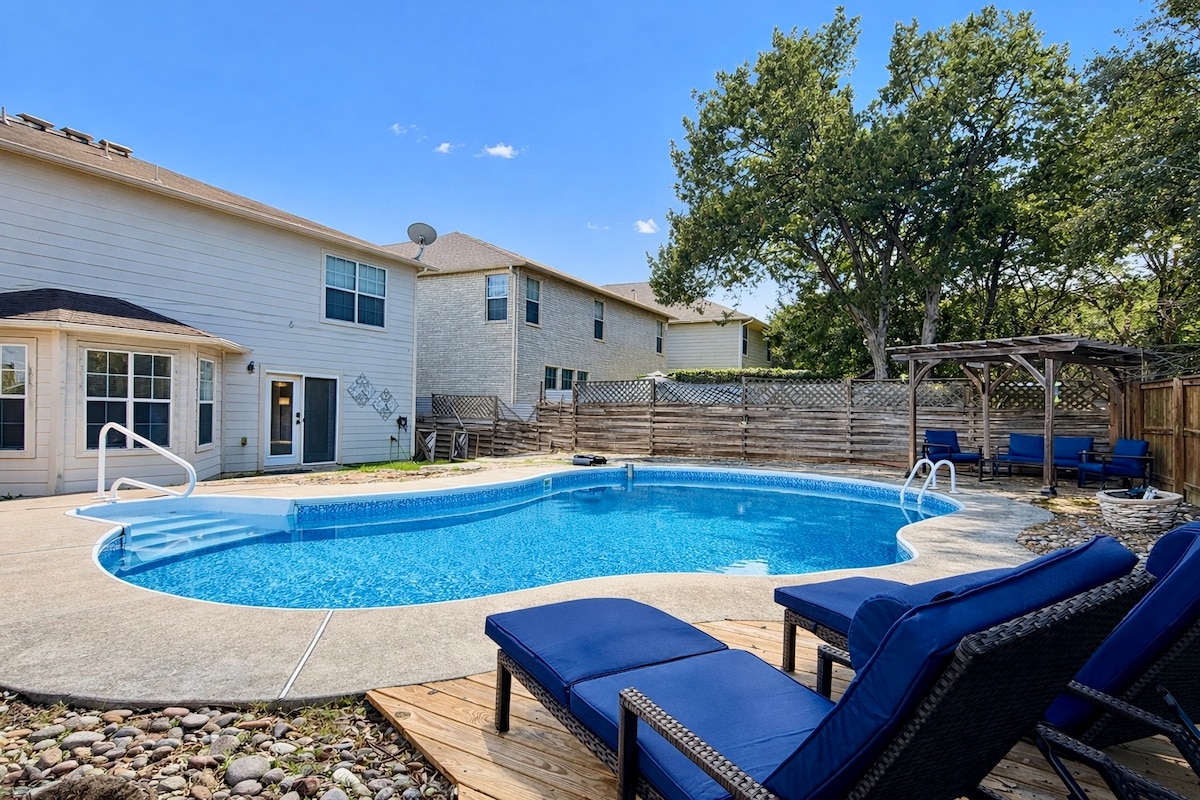 Experience resort-style living at this stunning 3-bedroom, 2.5-bath San Antonio retreat featuring a Keith Zars luxury pool that promises relaxation and elegance at every turn. Perfectly blending comfort and style, this home offers a peaceful escape just minutes from the city’s best attractions. Spend your days lounging by the sparkling pool, or enjoying a barbecue on the covered patio surrounded by lush landscaping and privacy. Inside, the spacious open floor plan invites you to unwind in the cozy living area, prepare meals in the fully equipped kitchen, or catch up on work in the dedicated office space. The bedrooms are designed for rest and rejuvenation, with plush beds and thoughtfully appointed bathrooms to enhance your stay. Whether you’re here for business, a family getaway, or a relaxing weekend, this home provides the perfect balance of tranquility and convenience. After a day exploring the Alamo, the River Walk, or nearby McAllister Park, come home to your own private oasis — where the shimmering pool sets the scene for unforgettable Texas evenings. Permit number: STR-20-13500125