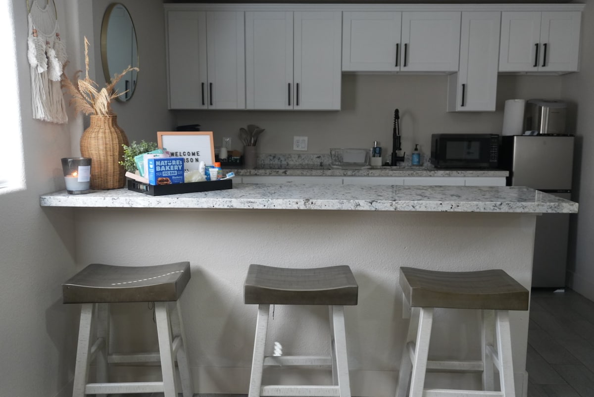 약간 떨어져 있지만 그리 많지는 않습니다. 피닉스와 투손 사이에 위치해 있습니다. 농가 느낌의 아늑한 스튜디오 아파트. 완비된 주방이 게스트를 기다리고 있습니다. 아침 필수품을 위한 무료 커피 스팟. 침실에는 퀸사이즈 메모리폼 매트리스가 있습니다. 어린이를 위한 이불. 영유아를 위한 팩앤플레이. 안심하고 이용하실 수 있도록 소독되었습니다. 아름다운 사막으로 둘러싸인 완벽하고 편리한 휴양지.