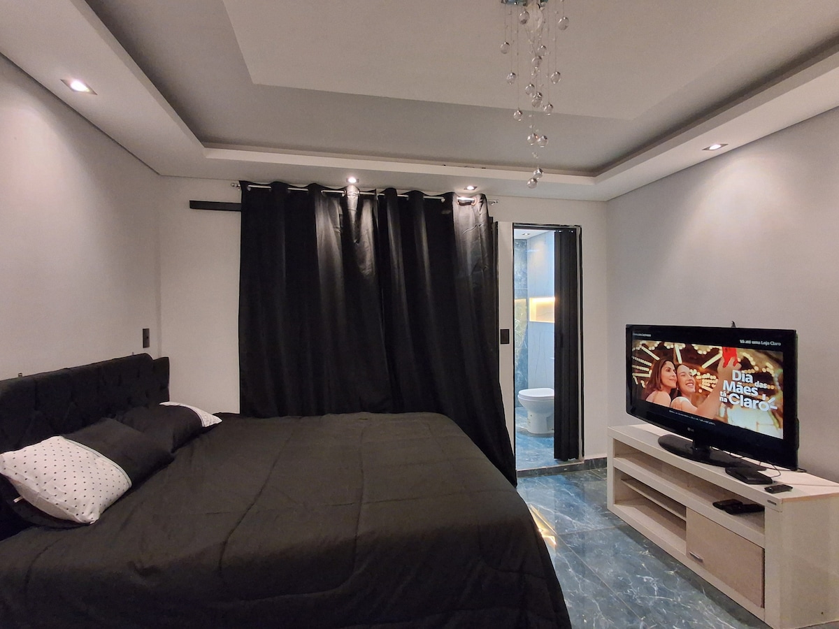 모던한 키트넷, 아늑하고 가구가 완비되어 있습니다! 더블 베드, TV, 초고속 와이파이, 냉장고, 쿡탑, 전자레인지, 에어프라이어, 조리도구가 구비된 주방이 있습니다. 컴팩트하고 기능적인 공간으로 커플이나 나홀로 여행객에게 적합합니다. 훌륭한 위치, 광장, 슈퍼마켓, 약국, 베이커리, 학교에서 가깝습니다. 실용성, 편안함, 조용한 숙박을 제공하도록 설계되었습니다! 잘 관리된 환경을 찾는 분들에게 안전하고 필요한 모든 것에 쉽게 접근할 수 있는 이상적인 숙소입니다.