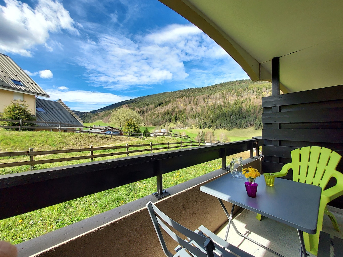 현대적이고 아늑한 스타일로 완전히 리모델링한 아파트에서 4계절 내내 베르코르를 즐기십시오. 발코니가 있는 남쪽으로 향하여 산과 콜린 데 뱅(루지 파크)의 멋진 전망을 즐길 수 있습니다. 조용한 주택가에 위치하고 있으며 스키 슬로프로 가는 무료 셔틀에 매우 가깝습니다. 마을 중심지까지 걸어서 갈 수 있습니다. 장점: 테니스 코트, 전용 지붕 주차장, 스키 보관소 및 자전거 보관소, 엘리베이터.
