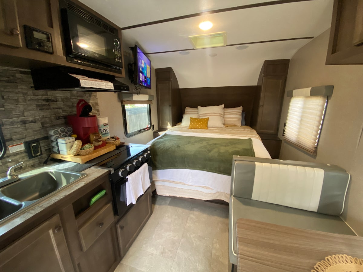 매력적인 250평방피트. 사우스 유진 방갈로 게스트 로프트로 전용 외부 출입구(10계단 위)가 있으며, 1명의 게스트에게 이상적입니다. 세면대, 변기, 샤워기를 갖춘 전용 욕실이 있습니다.* 편안한 메모리폼 매트리스, 대나무 커버, 고급 침구가 구비된 퀸사이즈 캐비닛 침대. * 욕실 천장 높이는 최고 수준에서 7'6"이지만, 샤워실의 각진 천장으로 인해 키가 큰 게스트의 경우 머리 공간이 충분하지 않을 수 있습니다. 샤워 헤드는 편리함을 위해 탈착식/소형입니다.