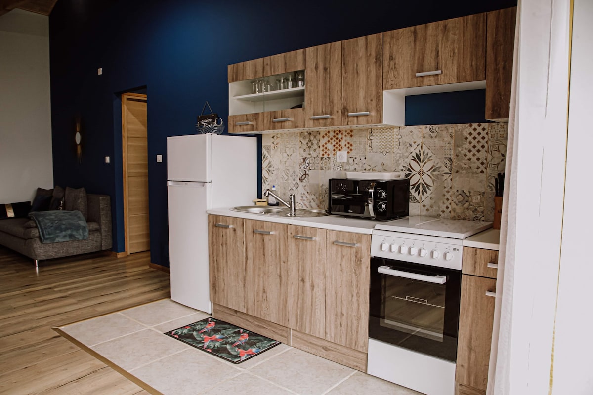 The perfect escape in the heart of the Ardeche with stunning views across the valley and short walk to the popular swimming spots in the village. Situated immediately next to the large farmhouse means it’s ideal for nature lovers who like comforts of modern living. It has its own entrance, garden&terrace for alfresco eating, sunning and star gazing. The are little touches like a dishwasher vinyl record player and coffee lovers equipment Your own parking space is a 3 minute walk.