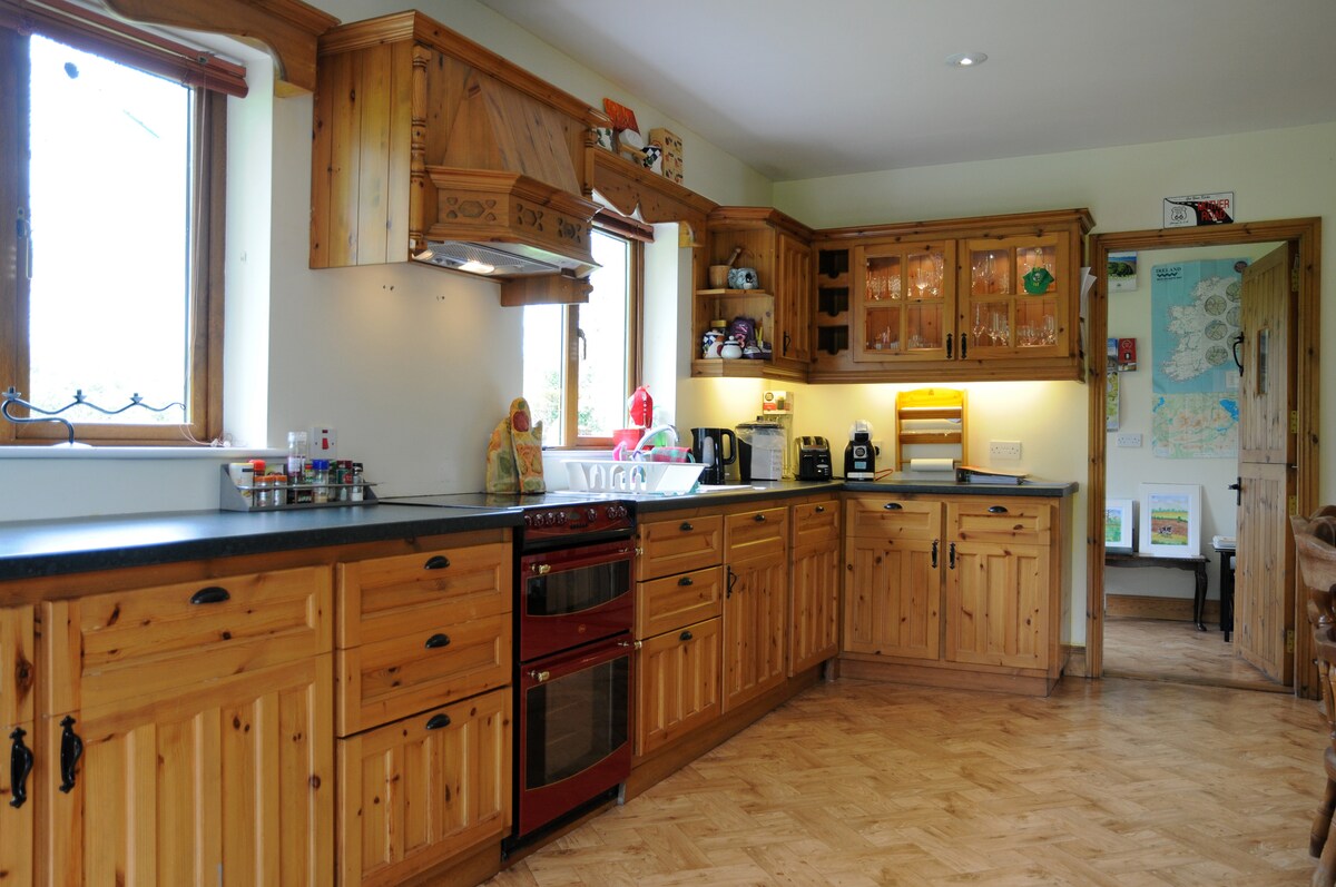 와일드 애틀랜틱 웨이와 경치 좋은 링 오브 케리에 위치한 크고 아름다운 숙소입니다. 멋진 전망을 자랑하며, 모든 객실에는 WC와 샤워기가 있습니다. 시설이 완비된 주방, 다용도실, TV/패밀리룸, 식사 공간, 바비큐 시설이 갖춰진 야외 데크. 자연 애호가, 해변, 산책을 즐기기에 완벽합니다. 켄메어에서 차로 10분, 스님에서 차로 20분 거리에 있습니다. 숙소 바로 맞은편에 숲길이 있습니다. 모든 침구, 수건, 필수품이 준비되어 있습니다. 2020년 2월에 새로운 리노베이션이 완료되었습니다.