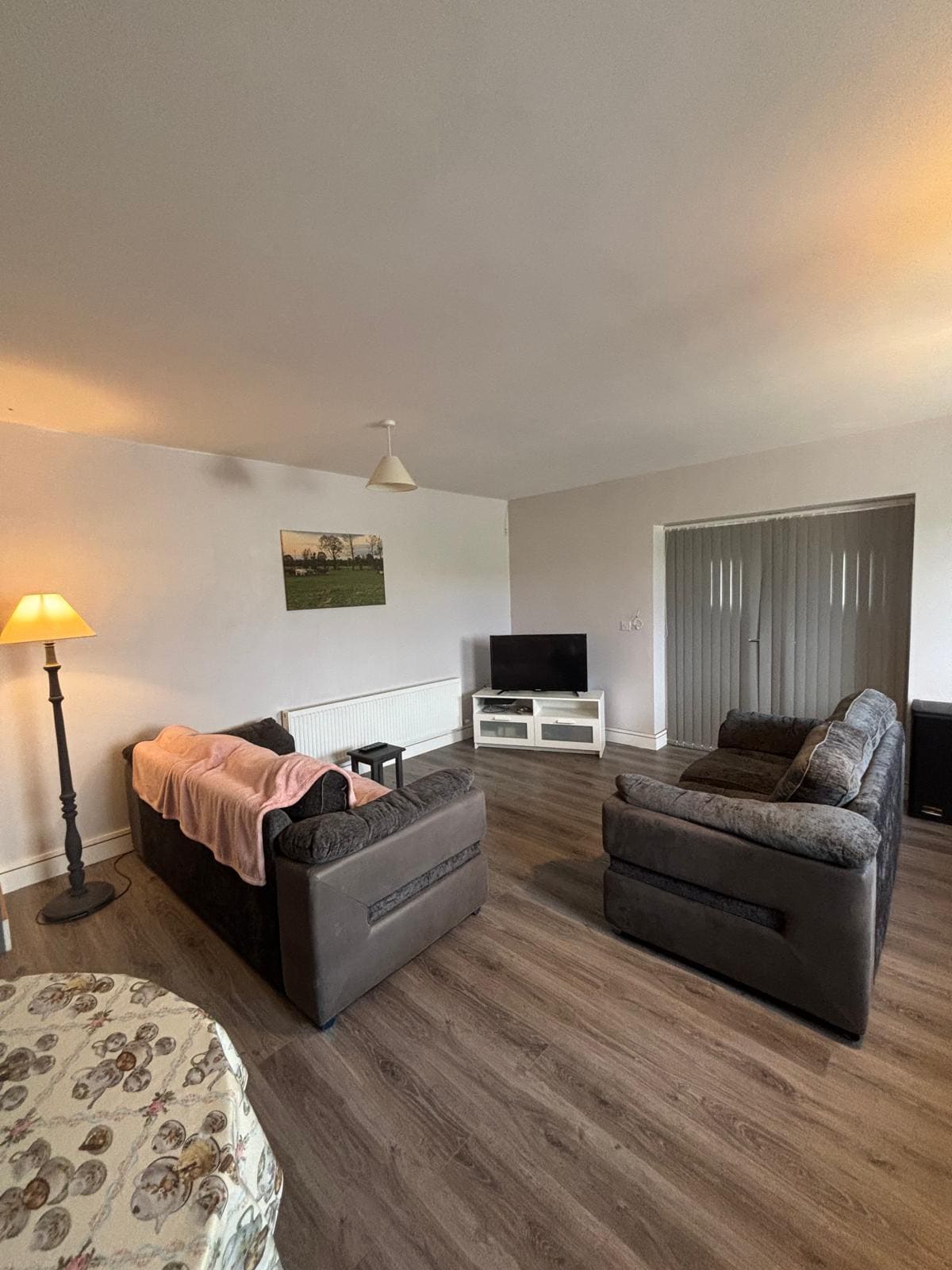 이 숙소는 조용한 시골 지역에 위치하고 있지만 M7 고속도로까지 8km 거리에 있습니다. 인기 있는 디자이너 킬데어 빌리지 쇼핑 아울렛에서 13km 거리에 있습니다. 경치 좋은 무어 아비 우드까지 도보로 몇 분 거리에 있어 환상적인 산책로를 즐기고 우드스택 카페에서 커피를 마시며 휴식을 취할 수 있습니다. 더 많은 산책을 즐기기 위해 배로우 블루웨이, 아름다운 운하 산책로에서 차로 5분 거리에 있습니다. 현지 승마 학교인 폭스 커버 뷰 마구간 옆에 위치하고 있습니다. 킬데어/레이즈 관광지 커라 경마장 16분 펀체스타운 경마장 30분 몬델로 파크 30분 스트라드벌리 일렉트릭 피크닉 18분 라테니스카 전국 쟁기질 경연대회 25분 이 아파트는 시설이 완비된 주방/식사 공간/거실 공간, 침실 2개 및 욕실 2개로 구성되어 있으며, 아래층 침실에는 더블 침대가 있고, 위층 침실에는 더블 침대 1개, 싱글 침대 2개 및 유아용 침대도 마련되어 있습니다. 와이파이 및 완비된 아마존 파이어 스틱이 있습니다. 세탁기, 다리미 및 다리미판이 있는 별도의 다용도 공간이 있습니다. 이 아파트는 숙소를 나누는 울타리가 있는 가족 숙소에 인접해 있습니다.