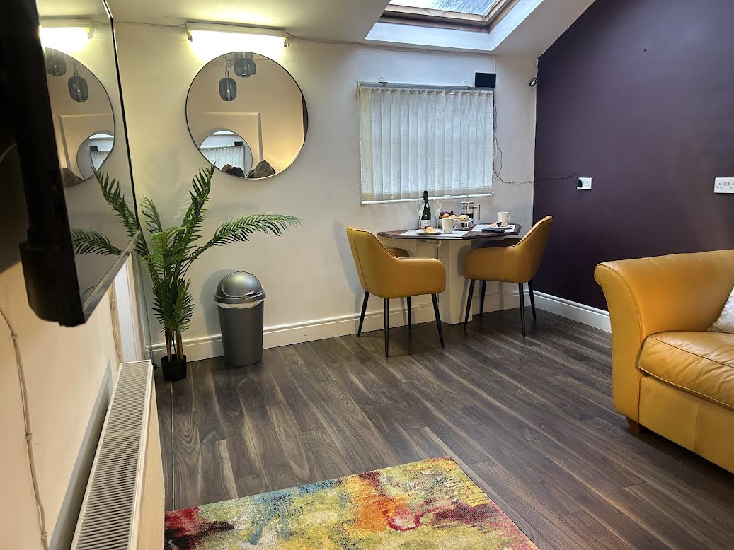 세레니티는 롱포드 중심가에 위치한 1층 아파트입니다. 트랜퀼리티의 자매 아파트입니다. 이 아파트는 건물 뒤편에 있습니다. 바쁜 세상에서 멀리 떨어진 조용하고 차분한 아파트로, 롱포드 기차역과 버스 정류장에서 단 5분 거리에 있습니다. 편안하고 아늑한 침실 1개의 아파트로, 전자레인지, 냉장고 등이 갖춰진 간이 주방이 있습니다. 아파트에는 평면 스크린 TV, 좌석 및 식사 공간, 샤워기가 있는 넓은 욕실이 있습니다.