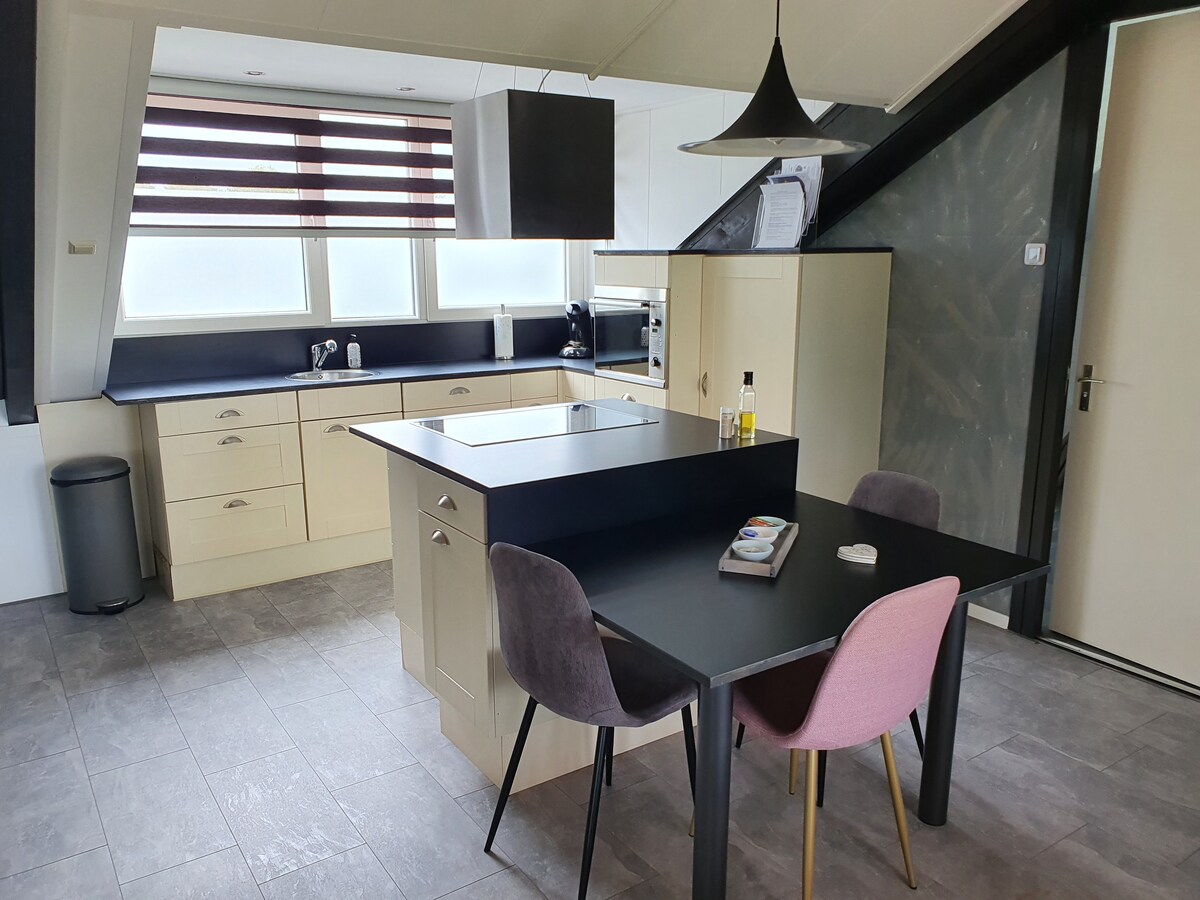 Farm apartment De Casterie is a newly built, exclusive and luxurious apartment in the bocage landscape of Twente, the country estate of the Netherlands. The apartment is located on the edge of a forest, 50 meters from the recreational lake Het Grasbroek. The picturesque Delden with an extensive range of culture and catering can be found a few kilometers away. The area is very suitable for walking and cycling (Landgoed Twickel) and horse riding.