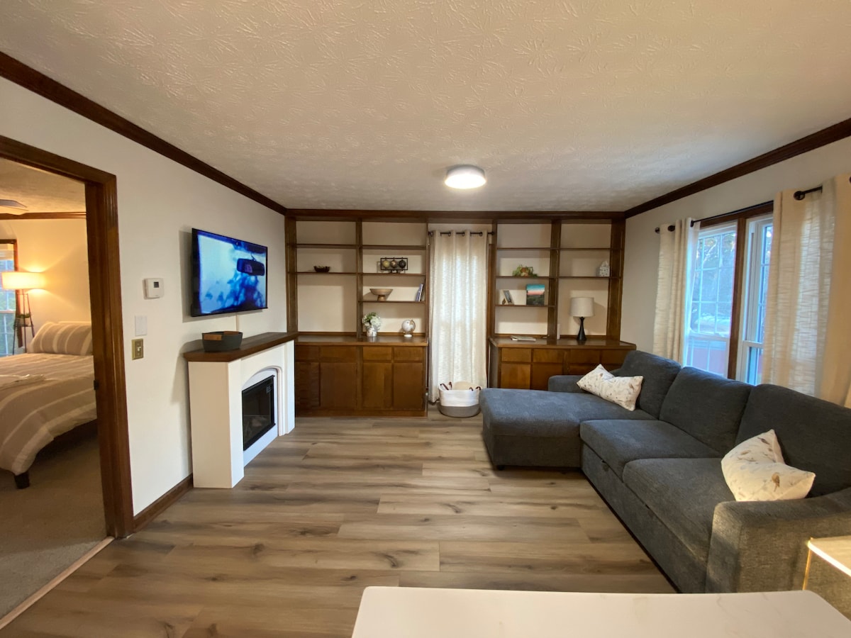 새롭게 리모델링한 지하 스튜디오 아파트로 식사 공간이 있는 주방, 풀 아웃 소파 베드가 있는 거실, 워크스테이션 공간, 퀸사이즈 침대 1개, 샤워기가 있는 욕실 1개, 지붕이 있는 파티오가 있는 전용 마당을 갖추고 있습니다. 숙소에는 두 개의 지정 주차 공간이 있습니다. 이 아파트에는 초고속 와이파이, 스마트 TV, 새로운 가전제품이 구비되어 있습니다. 요청 시 장난감, 콘센트 덮개, 아기 침대를 이용하실 수 있습니다. 골프 카트/도보/자전거 도로 근처에 위치하고 있습니다.