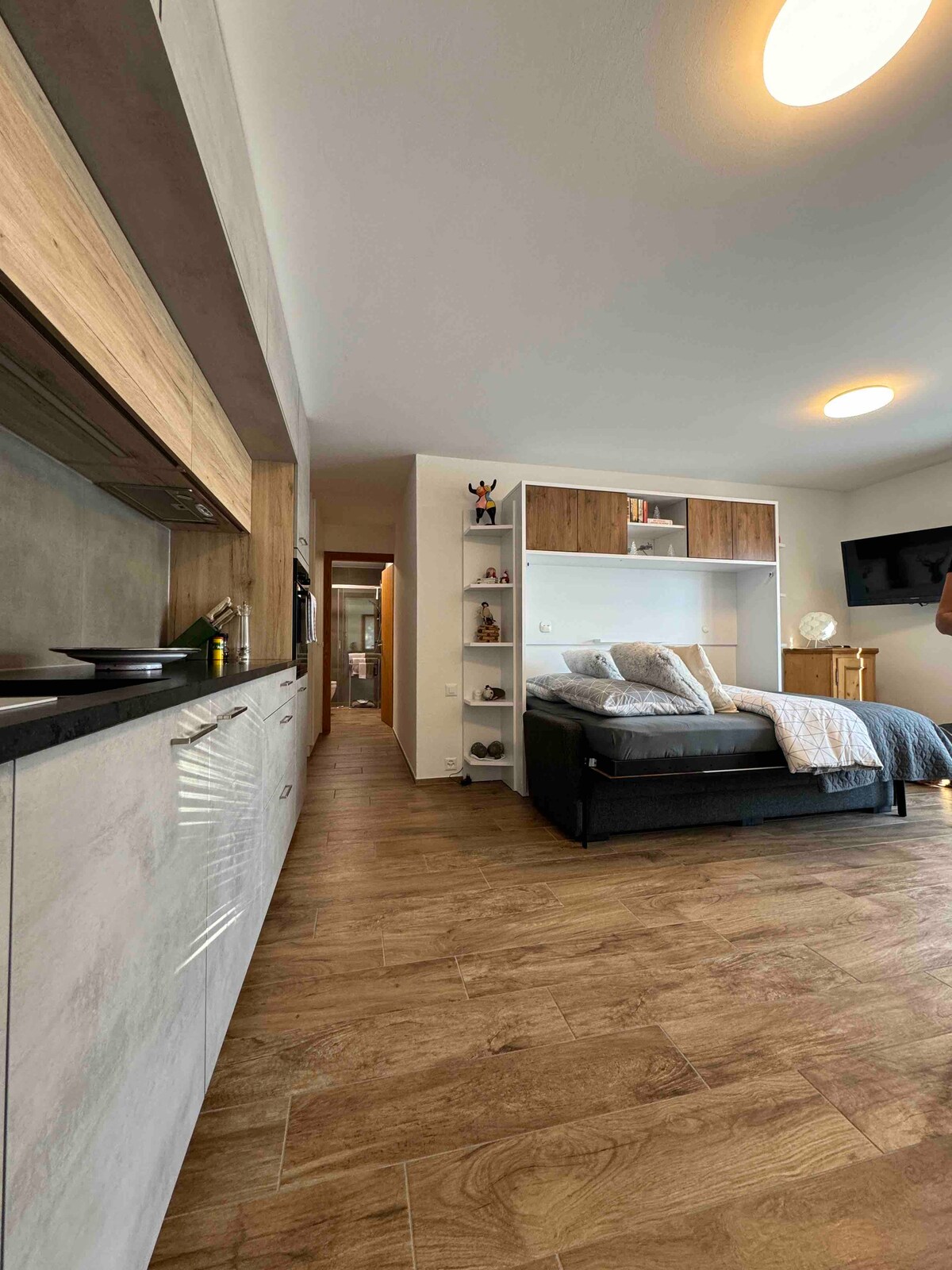 Superbe studio moderne pour 1 à 4 personne à Leukerbad, à 7 min de la Gemmi et à seulement 30 secondes de l'arrêt de bus. Niché sur les hauteurs, il offre un cadre paisible avec une vue magnifique depuis le balcon. Son design moderne, avec une porte voûtée et un éclairage LED élégant, vous séduira. Environ 10 minutes à pied du centre-ville, arrivée des pistes de ski à 2min. Cuisine équipée pour préparer des repas. Escapade parfaite pour les amoureux de la montagne et de la tranquillité.