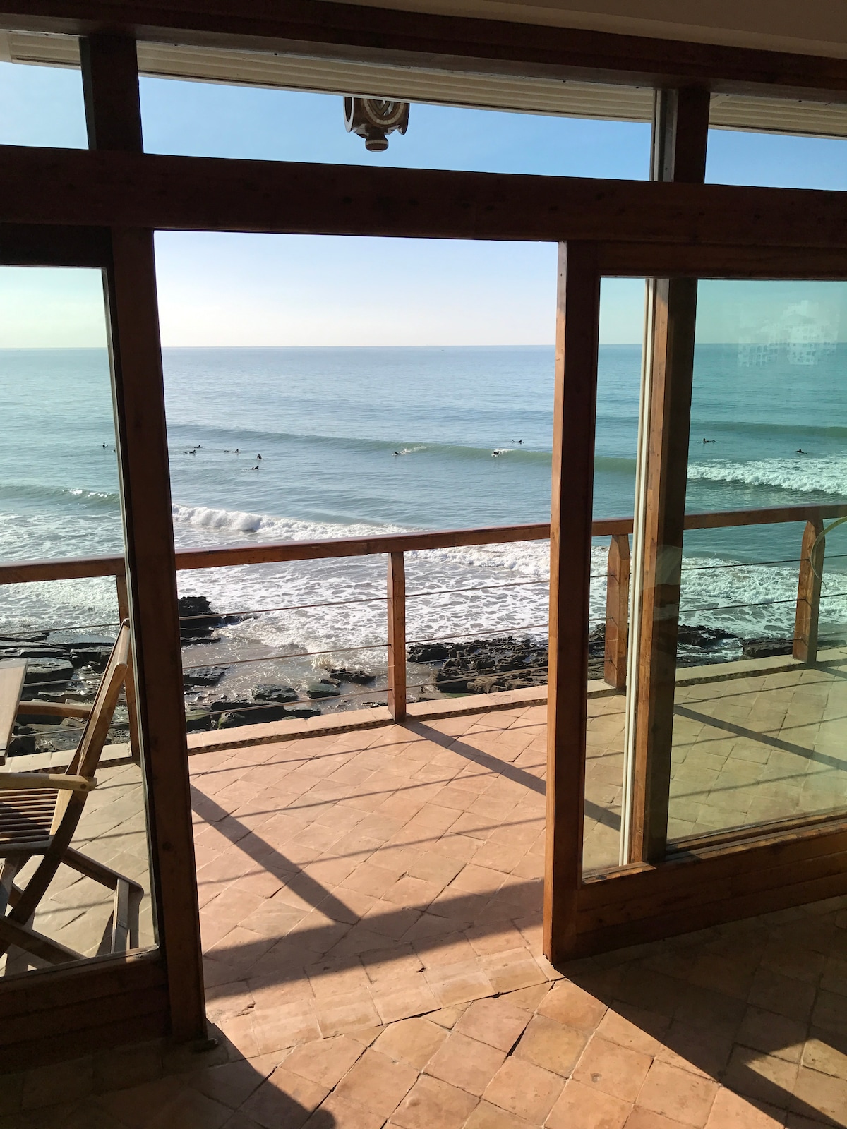 Nestled in the colorful village of Aghroud, where ocean meets mountains, RosyPlage is a true beachfront escape. Life here flows with the waves, golden sunsets, and quiet rhythms of a preserved coast. Every level opens to panoramic ocean views, with direct beach access and a surf spot just in front. A warm Moroccan lounge, sunlit terraces, and a rooftop made for sunsets and yoga. An authentic home by the sea. 4 levels with stairs (not suitable for kids or reduced mobility). Entrance camera