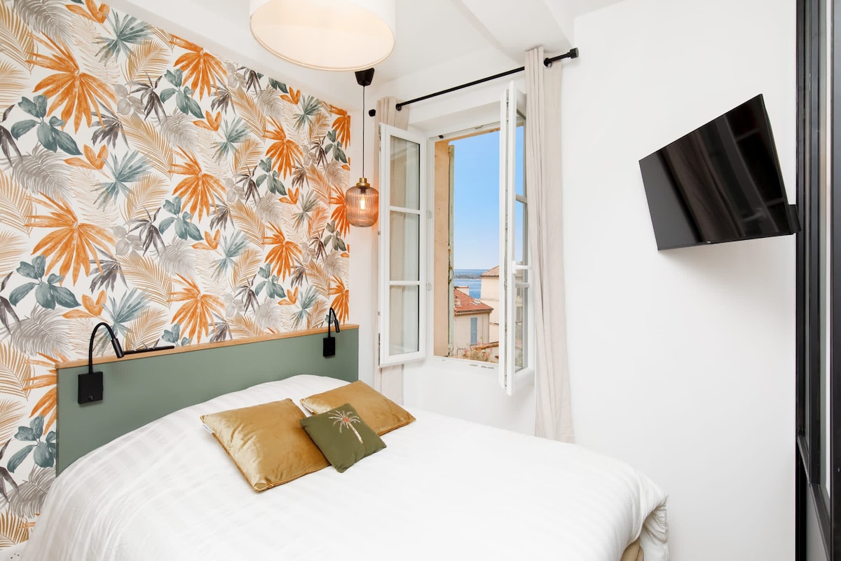 Architect-designed, 4-star sea-view apartment in the heart of Cannes, balcony overlooking the famous Félix Faure street. ✨Prime location: opposite the Palais des Festivals, port, beaches and the Croisette, just 2 min’ walk👣 🛍Surrounded by shops & restaurants 🛏1 bedroom (king-size bed) + premium sofa bed 🚿 1 shower room 🛜High-speed WiFi, Smart TV, Netflix, air conditioning, fully equipped kitchen (Nespresso), hair dryer, iron 🛁Bed linen, towels, soap, shampoo, coffee & tea provided 🔑